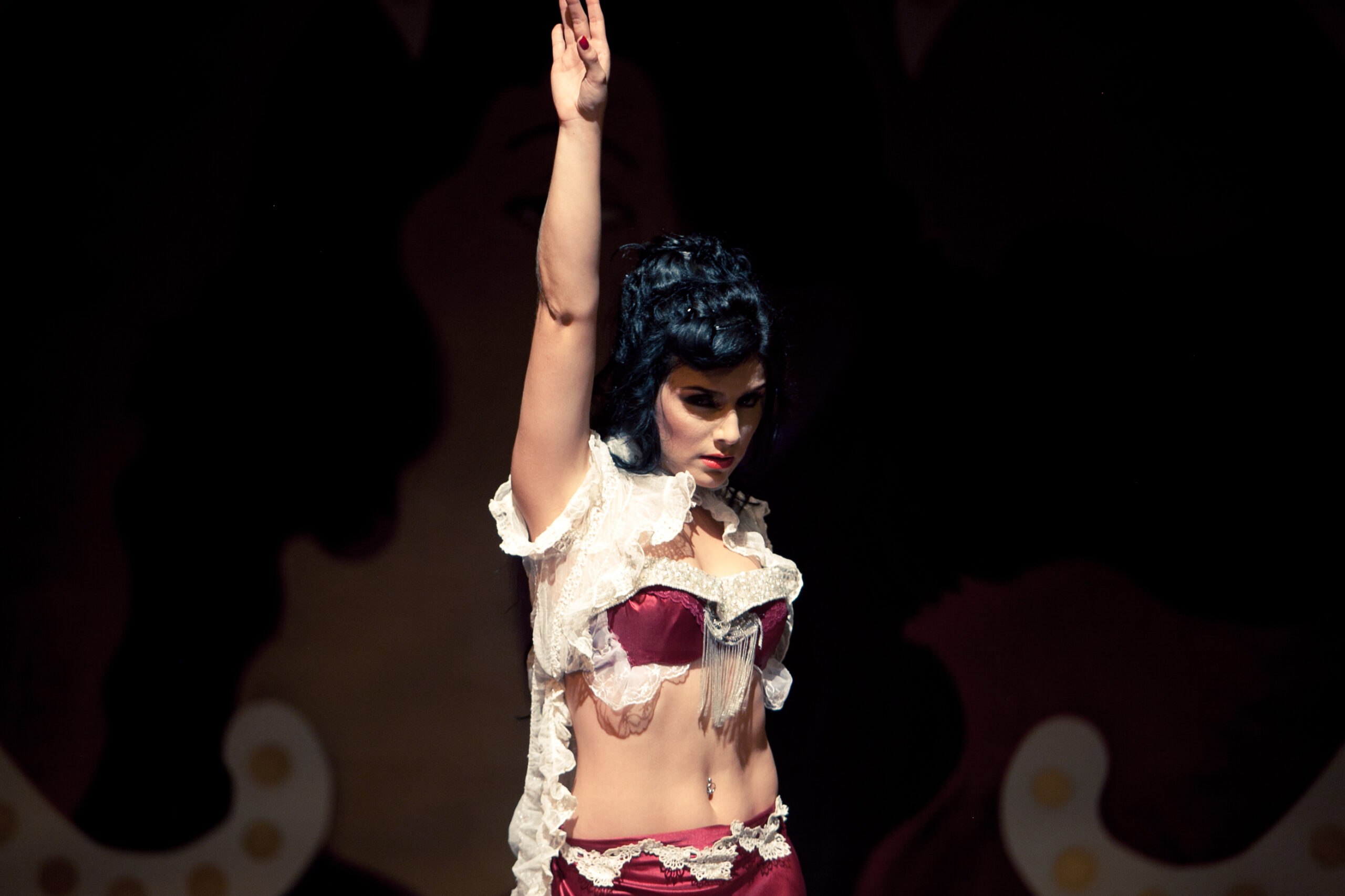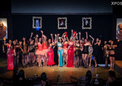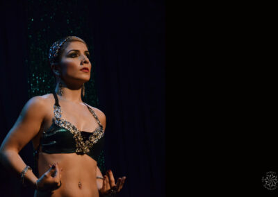 Este estilo se inspira en movimientos, elementos expresivos y estéticos del burlesque en sus diferentes épocas y lo combina con la técnica del Fusión Bellydance. La música es versátil, con matices “vintage” jazz y modernos. Este coqueto y teatral baile busca resaltar la elegancia y expresividad, ganar confianza y proyección escénica.